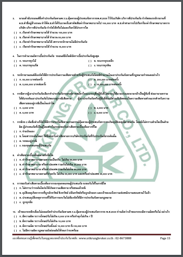 ตัวอย่างข้อสอบบัตรนายหน้าประกันวินาศภัย