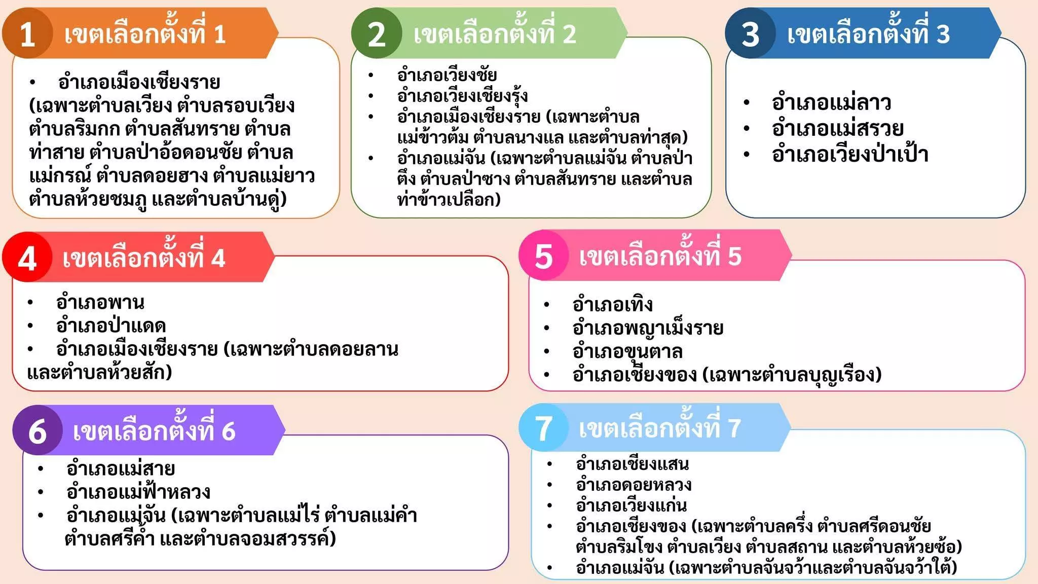 เขต 7: อ.เชียงแสน, อ.ดอยหลวง, อ.เวียงแก่น, อ.เชียงของ และ อ.แม่จัน (บางตำบล)