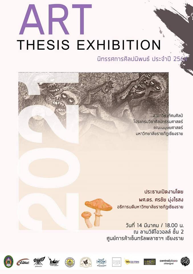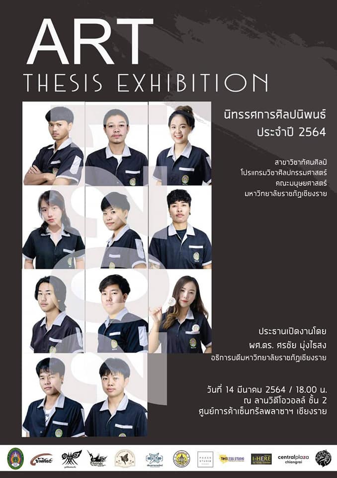 เรียนเชิญผู้สนใจเข้าชมงานนิทรรศการศิลปนิพนธ์ ของ นศ.สาขาวิชาทัศนศิลป์ ปี4 คณะมนุษยศาสตร์ มหาวิทยาลัยราชภัฏเชียงราย เปิดงานวันที่ 14 มีค. 64 เวลา18.00น. ณ ลานvedio wall ชั้น2 เซ็นทรัลโรบินสันเชียงราย แสดงงานถึงวันที่ 27 มีค. 64